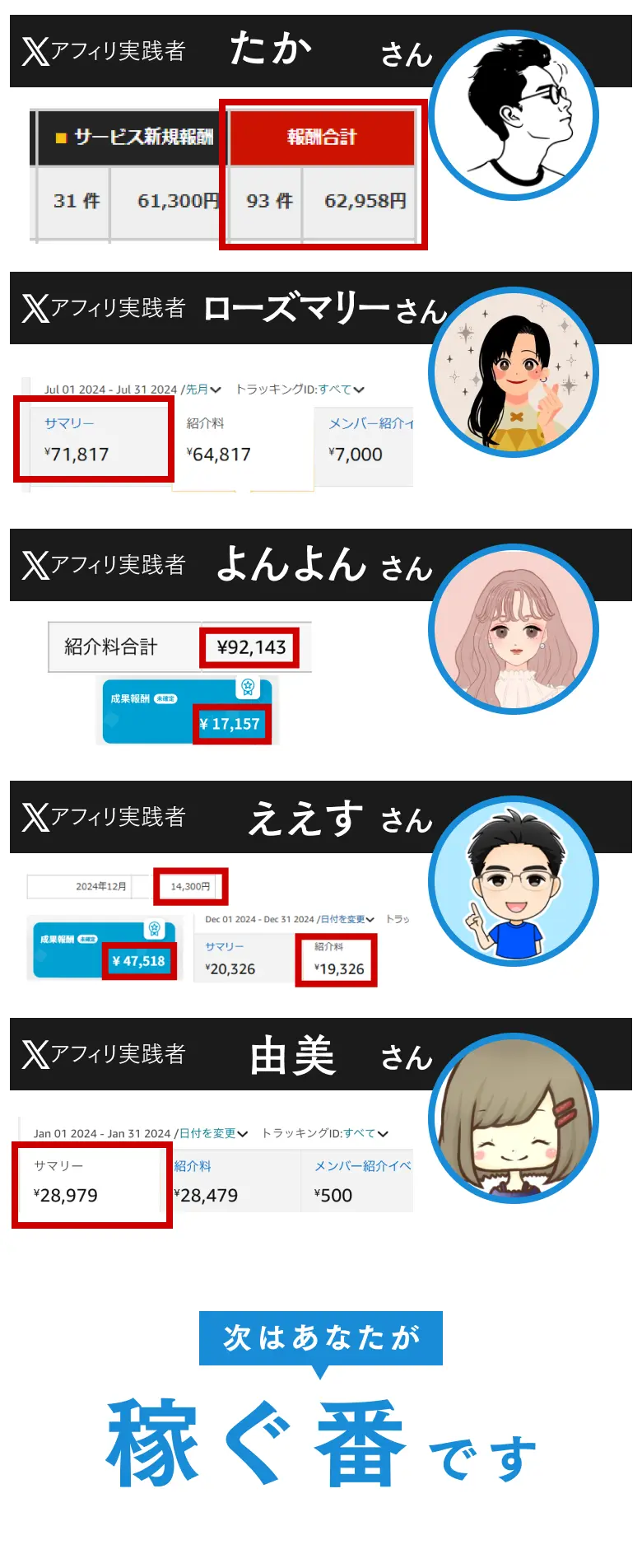 必ず稼げるという保証は申し訳ございませんが、ありません。 稼ぐスキルを習得できるように精一杯サポート致します。