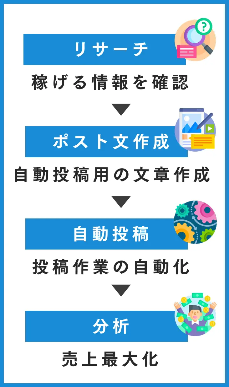 AIで生成した1つのポスト文を専用ツールで自動投稿用に仕上げることで、